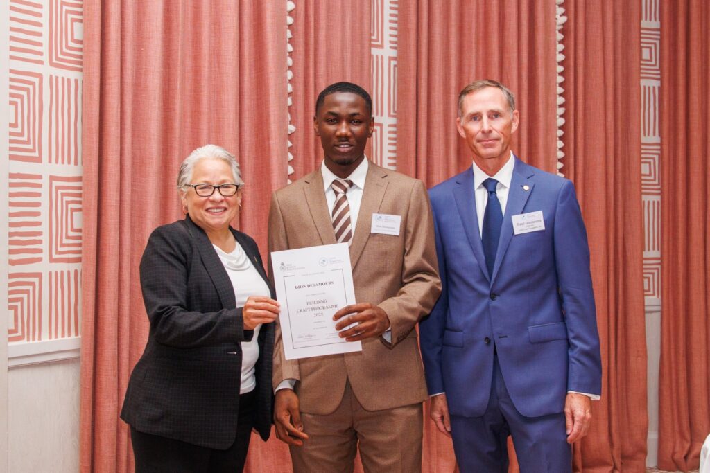 A highlight of the evening was the presentation of certificates to the Peter George Goulandris Heritage Scholars, delivered by Minister Hanna Martin. The programme, launched in partnership with The King’s Foundation Building Crafts Programme, enabled eight Bahamian tradesmen to train in the United Kingdom in traditional crafts essential to heritage preservation.